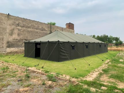 Mild steel round poles for the walls and center powder coated against rust matching the colour of inner lining
